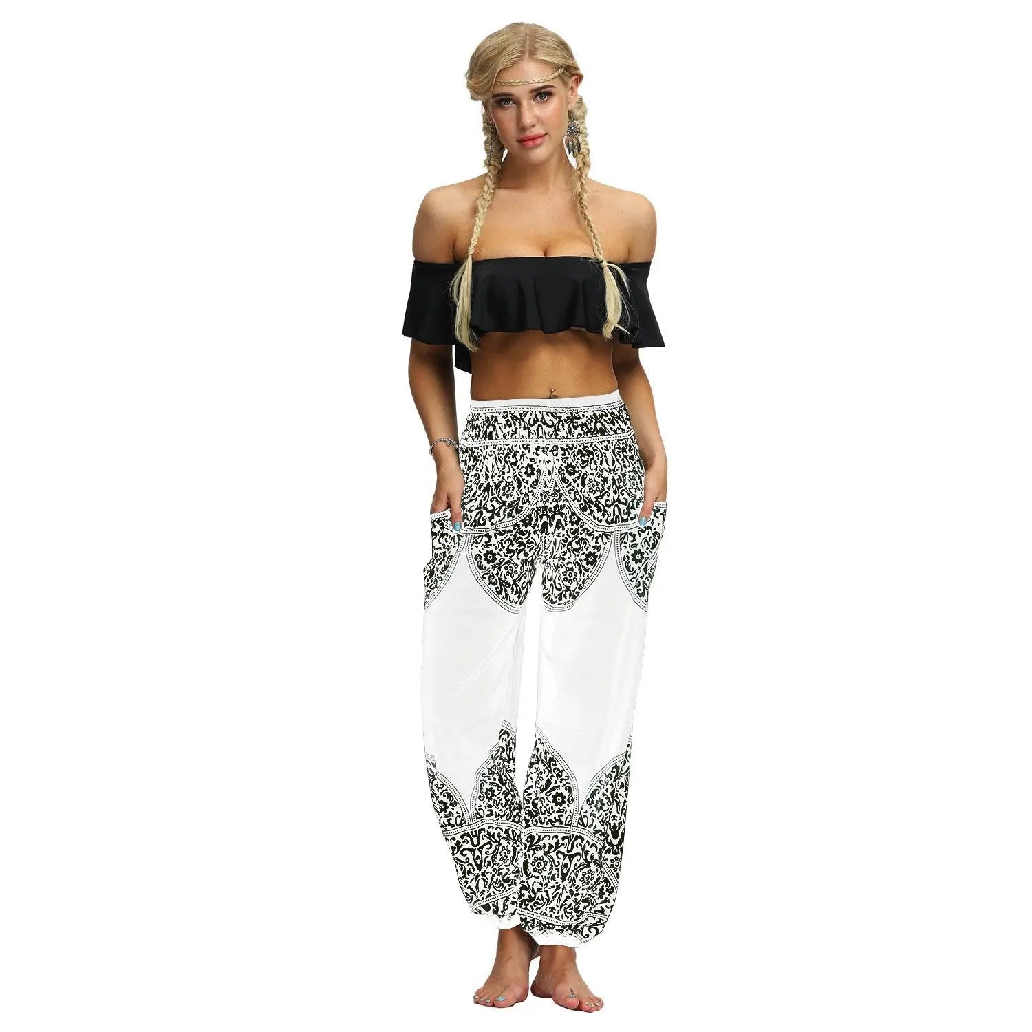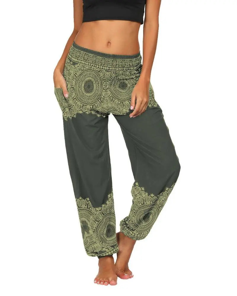 Women's Tribal Print Elastic High Waist Yoga Harem Pants With Pocket