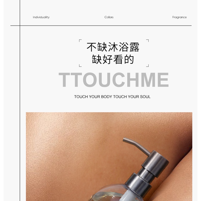 产品名称:TTOUCHME 533沐浴露品牌: TTOUCHME型号: 533沐浴露产地: 中国大陆香味: 【超值两瓶装】533香型*2瓶 含泵头*1 【超值两瓶装】101香型*2瓶 含泵头*1 【超值两瓶装】419香型*2瓶 含泵头*1 【超值两瓶装】101香型+533香型 含泵头*1 【沐发组合】533沐浴露简约装+盲盒洗发水 【洗护组合】533沐浴露简约装+533身体乳 深蓝 533 【木质馥奇调】 (含泵头) 白色 101 【绿叶花香调】 (含泵头) 黑色 419 【水生馥奇调】 (含泵头) 绿色 359【柑橘馥奇调】(含泵头) 【三瓶装】533香型*3瓶 含泵头*1 【三瓶装】101香型*3瓶 含泵头*1批准文号: 粤G妆网备字2018206848保质期: 24个月适合肤质: 任何肤质适用对象: 成人功能: 深层清洁 清爽 舒缓肌肤 控油 清凉舒爽规格类型: 套装包装体积: 24*24*9cm是否为特殊用途化妆品: 否是否量贩装: 否净含量: 550ml