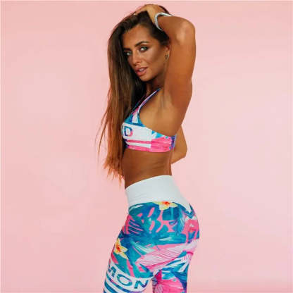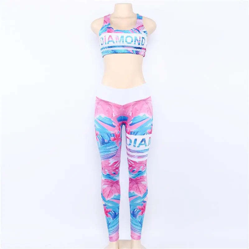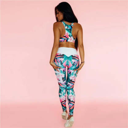 Women's Two Piece Floral Sport Bra And High Waist Leggings Outfit