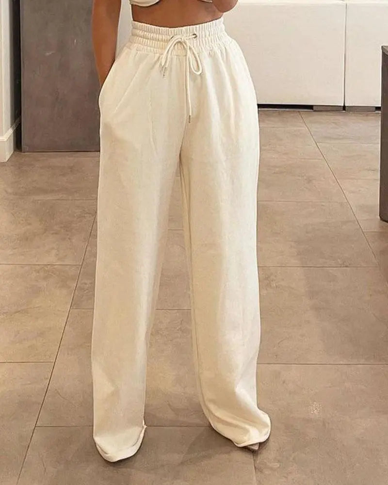 Women's Two Piece Knot Front Crop Cami Top And Sweatpants Set