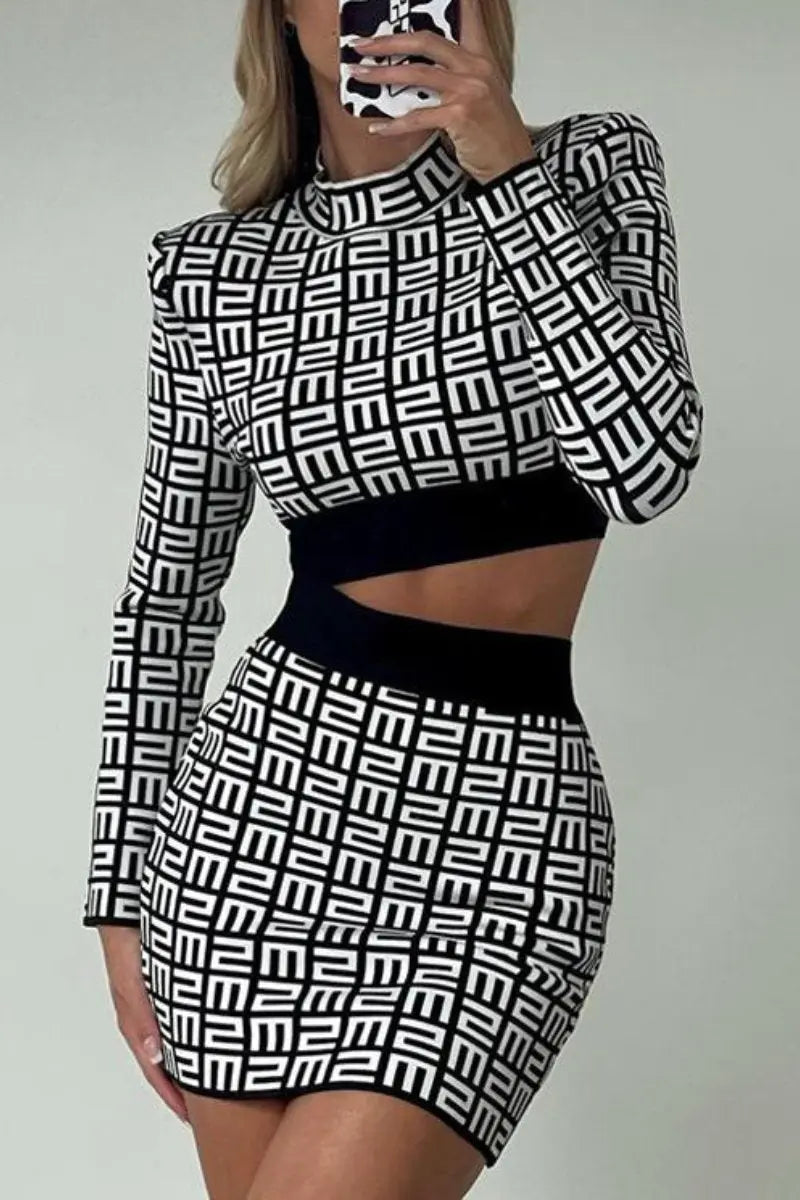Women's Two Piece Allover Print Crop Top And Bodycon Skirt Outfits