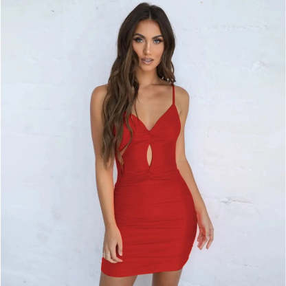 Women's Twist Front Keyhole Ruched Sleeveless Cami Bodycon Dress
