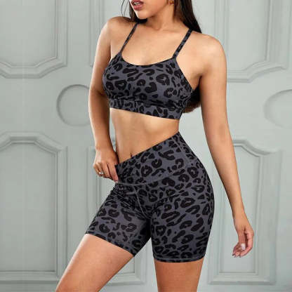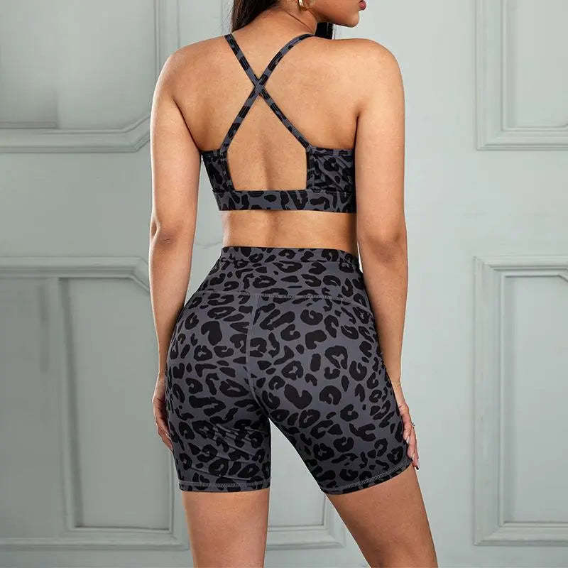 Women's Two Piece Leopard Print Crop Camisole And Yoga Shorts Set